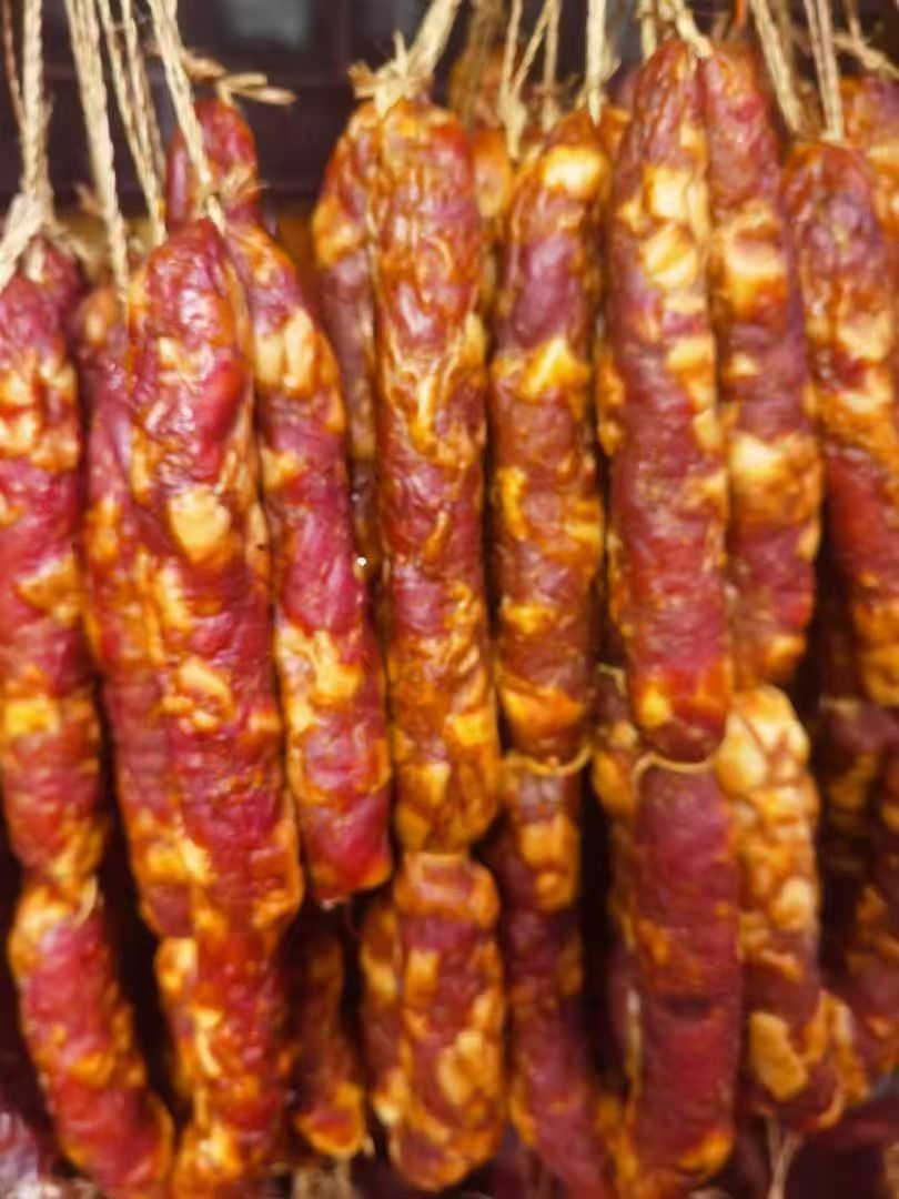 其中在豬肉的選擇上面,大家可以選用前腿肉,肥瘦比例在3:7左右是最棒的,這樣制作出來的香腸在口感上更飽滿。那在在青花椒的選擇上面,大家可以選用四川的青花椒,想要做出正宗的麻辣香腸,我們就需要在選材選料上面講究。最后大家可能最困擾的是灌香腸的過程,大家不要覺得這件事很難,其實(shí)很簡(jiǎn)單,把肉都放進(jìn)去,就好了,但是需要在過程中盡量把空氣排擠出來,那里面空氣多,也沒關(guān)系,不要慌,我們拿出針或者牙簽或者尖細(xì)的工具扎一下,讓空氣出來,就可以了,香腸里面的空氣不排出來,會(huì)讓香腸發(fā)霉,肉質(zhì)邊差,然后影響存儲(chǔ)時(shí)間。